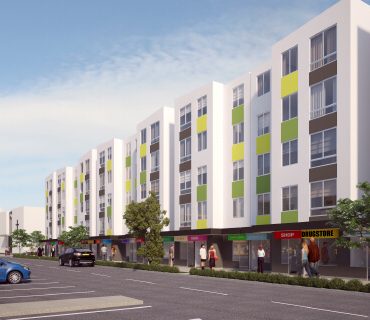 Está conformado por 168 apartamentos VIS de 54,5 M2 (área construida) dispuestos en 9 torres de 5 pisos en conjunto cerrado y 42 locales comerciales de 8,02 M2 a 22,04 M2 (área construida) con acceso directo desde el exterior. Esta dotado con portería para control del acceso peatonal y vehicular con sala de espera, unidad técnica de basuras con espacios para clasificación y edificación de equipamiento comunal de 3 pisos y terraza útil para los usos de salón múltiple, gimnasio, administración y salón social.